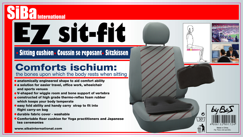 The EZ sit-fit sitting cushion unfolds its amazing effects by its inner recesses in the foam rubber which are in line with your sitting bones and tailbone. These bones carry the burden of your body weight when sitting and are subjected to pressure; causing the awareness of pain.